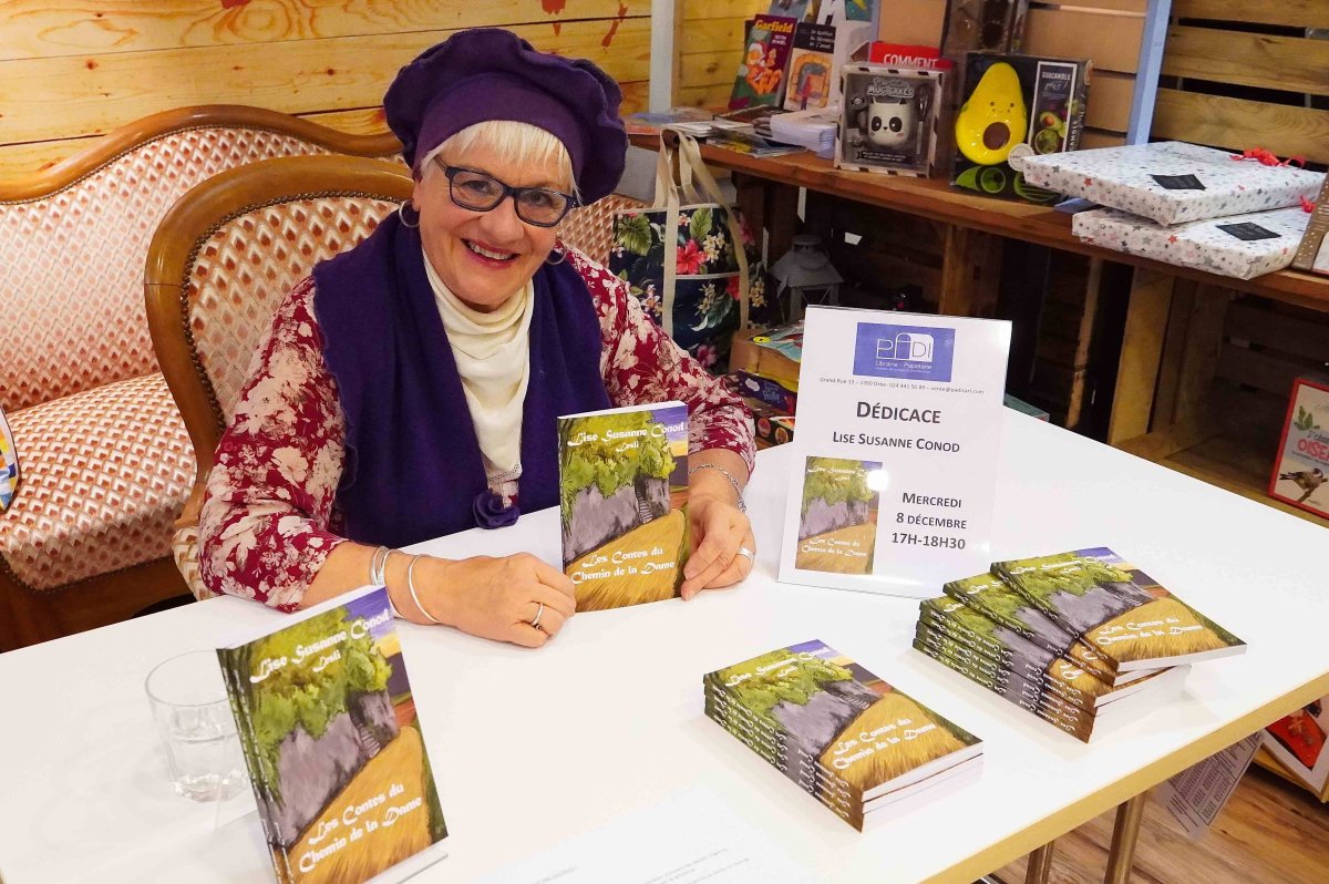Ainsi pourrait ĂȘtre rĂ©sumĂ© briĂšvement le parcours qui a menĂ© Lise Susanne Conod Ă prendre la plume pour Ă©crire son premier livre de contes. RĂ©sidant Ă Orbe, elle est en fait une enfant de BretonniĂšres oĂč ses parents tenaient lâĂ©picerie du village. Mais câest de son grand-pĂšre quâelle a reçu ce don et cette envie dâĂ©crire. Elle le dĂ©signe dâailleurs comme un poĂšte-paysan, lui qui Ă©crivit des piĂšces de théùtre pour les sociĂ©tĂ©s dâalors. Câest dâailleurs Ă lui quâelle adresse sa prĂ©face en des propos trĂšs attachants. MalgrĂ© une note maximale en rĂ©daction lors de son examen de fin de «prim-sup» et une passion trĂšs peu marquĂ©e pour les chiffres, elle fera un apprentissage dans les banques. Elle frĂ©quentera dâailleurs la plupart des agences de la rĂ©gion comme employĂ©e de commerce. AprĂšs une pĂ©riode de chĂŽmage, elle a hĂ©sitĂ© Ă partir dans une activitĂ© littĂ©raire pour rejoindre sa passion dâorigine, mais la raison lâa remise derriĂšre un bureau. LâĂąge de la retraite venant, elle a alors suivi, depuis 2016, une formation de conteuse avec Alix N. Burnand avant que Nicolas Genoud nâĂ©dite son livre. Et elle Ă©tait lĂ , ce mercredi 8 dĂ©cembre, pour le dĂ©dicacer Ă la librairie Padi qui lâaccueillait pour lâoccasion. Elle puise ses sujets dans les Ă©motions que la vie lui rĂ©serve, notamment des rencontres, des flashs de la vie quotidienne, des souvenirs. Ses contes transmettent des valeurs oubliĂ©es parfois. Sur quelques illustrations dâAmĂ©lie Buri, on trouve des titres Ă©vocateurs dont certains se rapportent Ă la rĂ©gion: Gruvatiez, les lutins du Risoud et quelques surprises comme un berger voulant piloter un avion de combat, un autre tirer Ă la kalachnikov. Il est Ă©voquĂ© le carnaval, NoĂ«l, les fifres et tambours. En tout, quinze contes rĂ©unis dans un petit livre quâelle va prĂ©senter dans diverses librairies de la rĂ©gion. On peut le trouver Ă la librairie Padi ou dĂ©couvrir son site: www.lesliconteuse.ch.